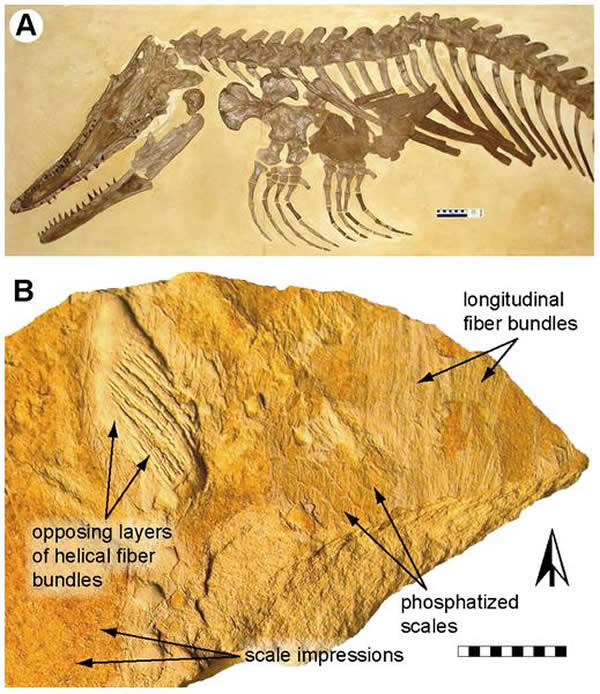 通常已灭绝的动物由于在化石化过程中失去了绝大多数身体部分使得人们很难全面获取它们的信息,不过最近在堪萨斯州西部发现一块保存精美的爬行动物化石却保留了软组织结构的遗存,这为科学者提供了了解它们的另一扇窗户。这块化石由隆德大学的Johan Lindgren进行研究,化石属于沧龙类,它们生活于6500~9800万年前。