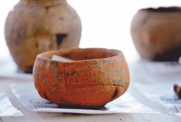 站在位于沈北新区郝心台村西北600米的高地上,市文物考古研究所考古二队的李树义说,这一片就是郝心台青铜时代遗址所在地,面积大约4万平方米,略呈方形。该遗址正处于建设之中的沈阳四环快速路中间,已发掘面积虽然仅有1500平方米,但取得了重大收获。李树义说,可以确认发掘区范围内为一处环壕聚落遗址,即人类聚居和生活的场所。共发现5座新乐上层文化的房址、6座新乐上层文化墓葬、38个灰坑及6个灰沟等,并出土了大量夹砂陶片及少量磨制石器。由于发掘区在早年曾遭取土破坏,大部分房址仅遗留有几个或十几个柱洞,活动面及灶址均已无存。房址多为小型,面积仅十余平方米。墓葬为竖穴土坑墓,形状有圆角长方形、梯形等,出土器物有壶、钵、碗等。
