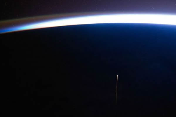 这是今年10月29日国际空间站上宇航员拍摄的俄罗斯进步-42P 货运飞船再入大气层时的情景,飞船背后划出一道明亮的等离子体尾迹。每年,自动飞船都要前往国际空间站数次,为那里的宇航员运送给养和各种设备。而当飞船运载的物资卸货完毕,宇航员们会将空间站上产生的大量垃圾让其带走。飞船随后会带着所运载的垃圾返回大气层中连同飞船本身一起焚毁。