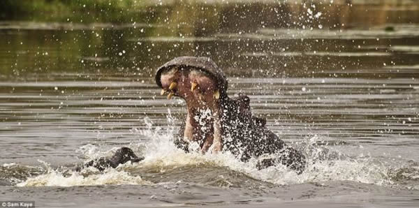 南非的一个湖泊,一只河马张开大嘴。在得知凯耶的真实年龄后,皇家摄影学会的评委大为吃惊