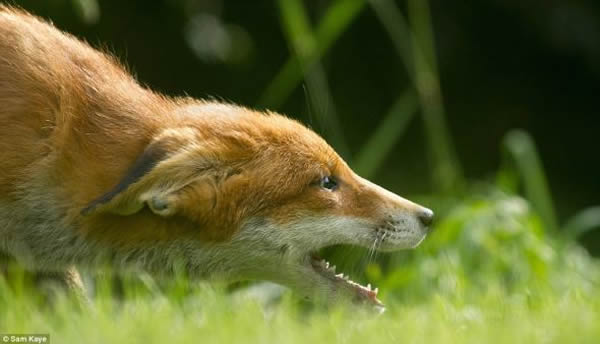 潜伏在草丛中的狐狸,已经做好准备,攻击猎物