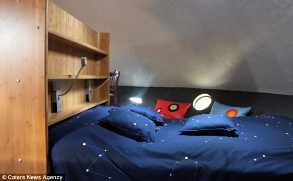 这座造型独特的“太空酒店”建于哈拉斯村附近的森林中,其建筑造型与传说中的外星飞碟如出一辙,让人不禁想起大导演史蒂文?斯皮尔伯格的电影《第三类接触》中那架在林中徐徐降落的UFO。旅馆内部则分上下两层,共有两套双人间客房,可同时供四位房客居住,住宿费最贵约为每晚420英镑(约合人民币4130元)。