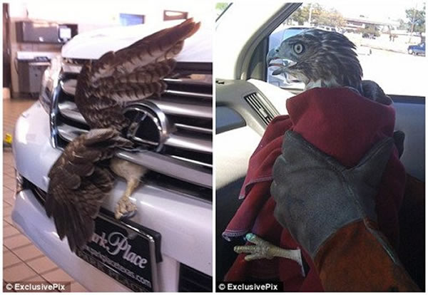 车主和汽车维修工将这只鹰解救出来后,竟发现它毫发无伤