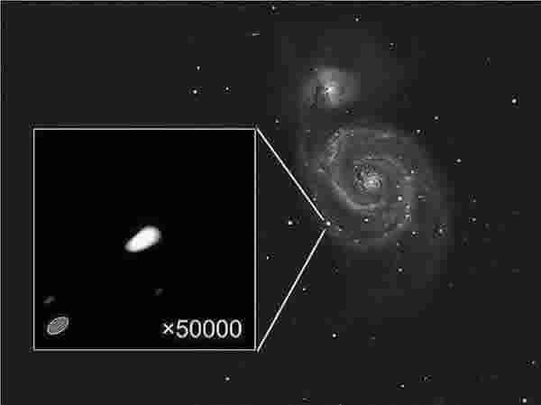 天文学家得到了一张前所未有的最年轻超新星的射电天文学照片。今年6月,在涡状星系(M 51星系)中的一颗恒星爆发14天后,欧洲各地的望远镜合作为这场宇宙中的爆炸拍摄了一张非常清晰的照片相当于能看到月球表面的一个高尔夫球。