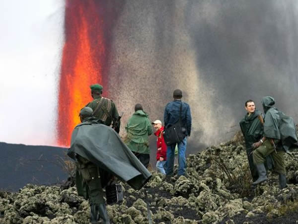 刚果(金)的尼拉贡戈火山呈完美锥形,高度达到11384英尺(约合3470米),位于非洲赤道地区,其喷口内存在一个熔岩湖。一些勇敢的游客曾与熔岩湖近距离接触。拥有50万人口的戈马距离尼拉贡戈火山很近,步行前往观看火山喷发景象的游客都从这里出发。