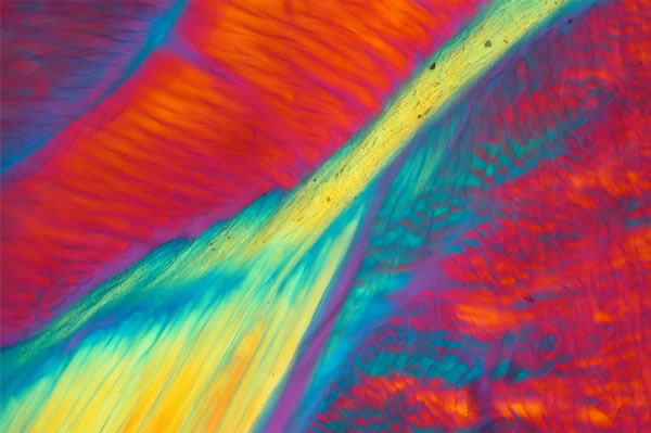 Lamm介绍说,这张显微照片是利用偏振光显微镜(一种能允许研究者控制光照条件以分析样品光学性质的设备)拍摄的,偏振光在通过恐龙薄片的过程中会因晶体的结构与组成形式而呈不同角度分散,观察的时候就会形成各种不同的颜色与图案。拍摄这样的显微照片当然不仅仅是为了好看,它能彰显生物的不同组织与原始骨骼中纤维的方向。此项研究还发现三角龙与牛角龙(Torosaurus)其实是同种龙不同的生长阶段,牛角龙是三角龙的成熟阶段,这与传统观点完全不一样。