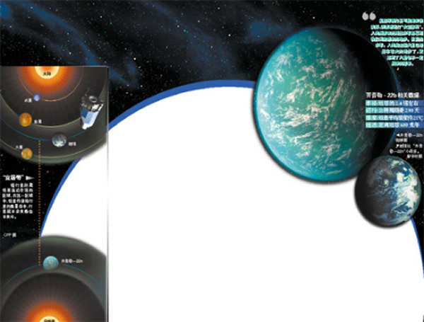目前,科学家还不知道,行星“开普勒-22b”上的主要成分到底是岩石、气体还是液体,但它的发现确实让人类在寻找类似地球行星的道路上更进一步。