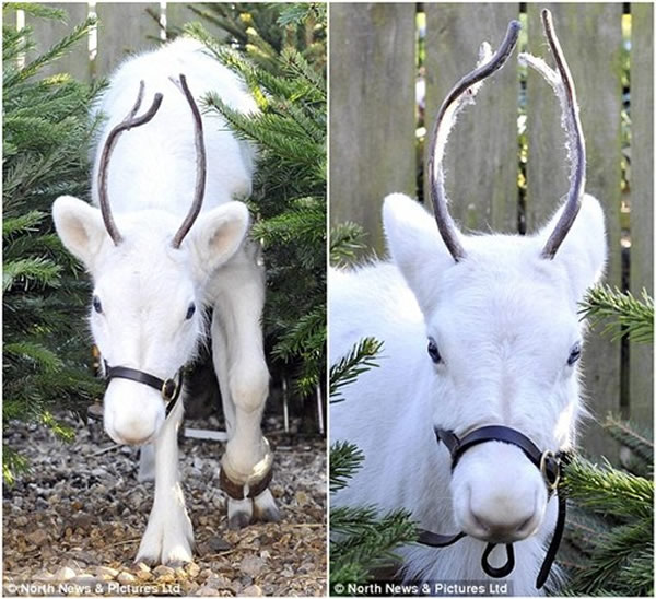 普通驯鹿应为灰色或棕色,白色驯鹿出现的几率仅万分之一。
