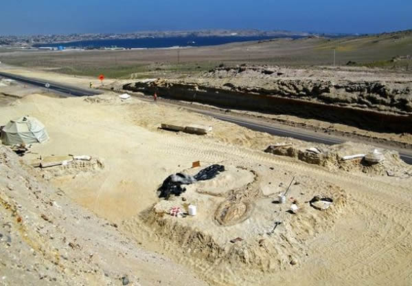 科学家们在智利塞罗-巴伦那(鲸山)附近的史前鲸类墓地上发现一头须鲸化石,并准备开始挖掘和保护。保护性措施包括:将骨架利用特殊的胶水一片片粘合起来,然后将它们包裹于一层石膏中便于保护和运输。化石发现地的地质学特征表明,这些鲸类最有可能死于大约500万年前的一个很浅的泻湖中。皮恩森介绍说,“这里的环境与如今智利海岸附近一小片小片的海草生长环境非常相似。”