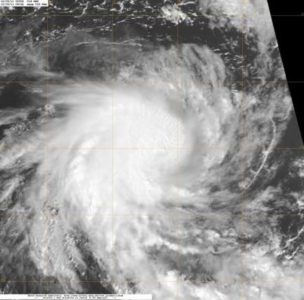 飓风是指强大而深厚的热带气旋。南印度洋飓风季节,美国宇航局的阿卡卫星观测到热带气旋01S(Tropical Cyclone 01S,TC01S)的形成。TC01S形成于2011年12月5日,最大风速达102公里/小时,并正在迅速加强,因此,预计还会有更大的风速。12月5日上午9时,TC01S位于南纬12.2度和东经87.0度附近、科科斯群岛(Cocos Islands)以西约545海里(约合1009公里)处。TC01S以13公里/小时的速度向西转移。