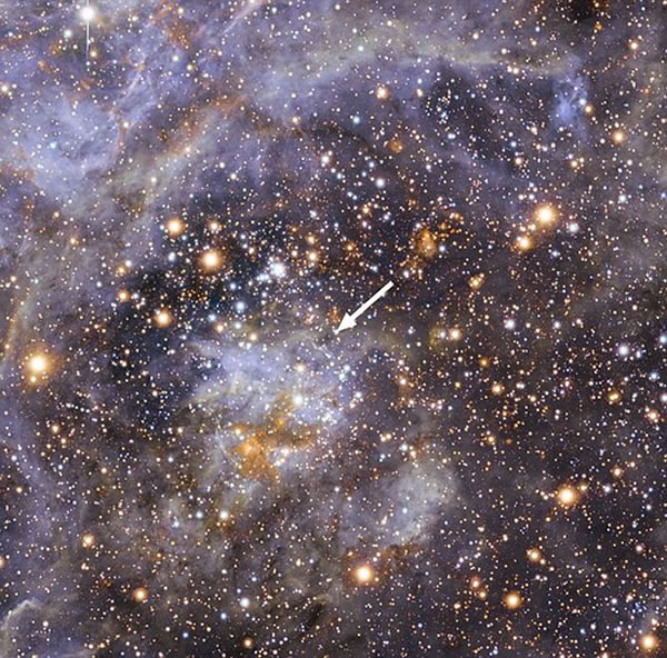 研究人员观测到的这颗恒星是VFTS 102,它非常炽热,是一颗高度发光恒星,是太阳亮度的10万倍,位于大麦哲伦星系中的蜘蛛星云。