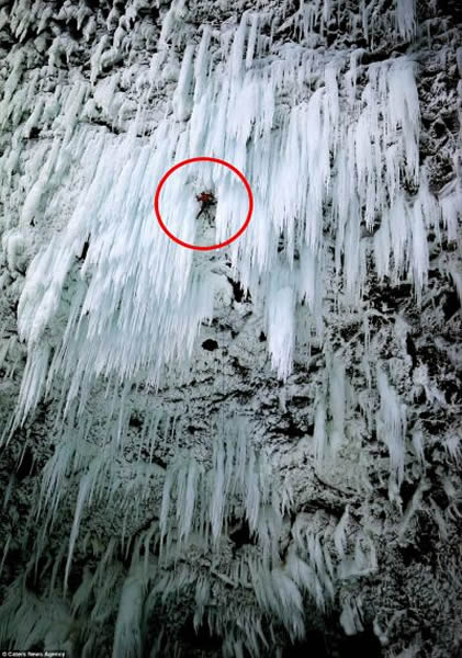 攀登高手冒生命危险征服加拿大137米冰瀑布