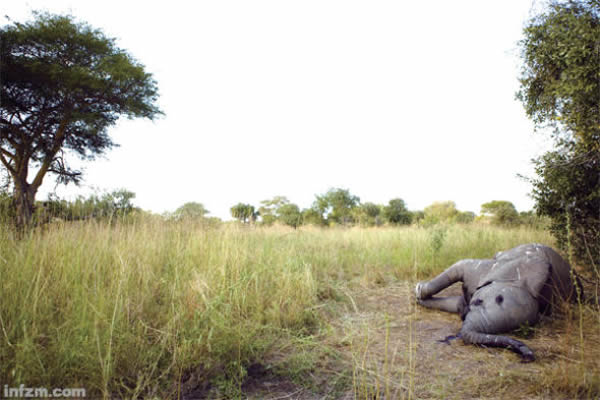非洲乍得,扎扎库马国家公园,被猎杀取牙的大象。中国象牙行业游说濒危野生动植物种国际贸易公约解禁象牙贸易,被认为可能加剧大象生存状况的危急程度。 (CFP/图)