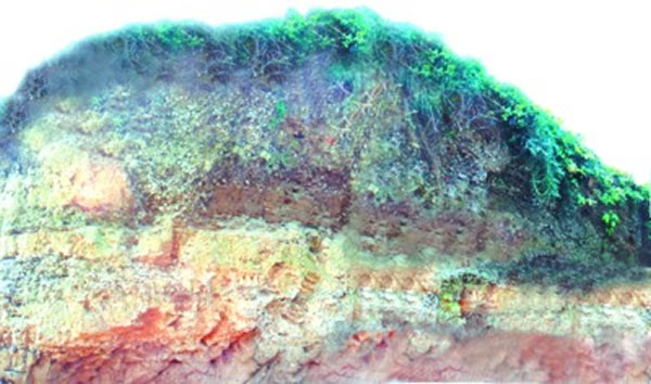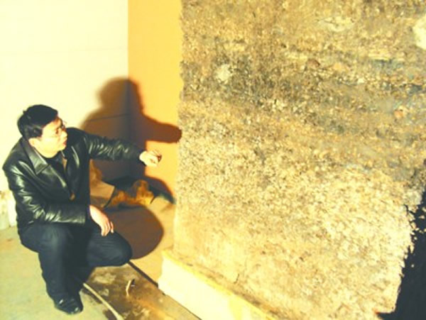 看似简单的贝壳堆积,却有着胶东人向文明发展的线索。“这不是一般的土层,是一块非常完整的贝丘地层,取自福山区邱家庄遗址,土层里包含大量贝壳,这是一处典型贝丘文化遗址。”市博物馆办公室主任王金定指着土层向记者介绍说:“你看,这块土层可以明显地看出4个层次,自上而下为:第一层,耕土层,也就是我们现代人经常使用的地表层,也是与今天的我们生活密切相关的土层;第二层:邱家庄二期文化,距今约5500年,里面的贝壳和兽骨反映的是那个时代贝丘人的一些生活气息;第三层:邱家庄一期文化,距今约6000年,也是目前发现的邱家庄遗址最早的有人类生活的气息;第四层,这里没有人类留下的遗迹遗物,在考古学上把它叫做生土层。”