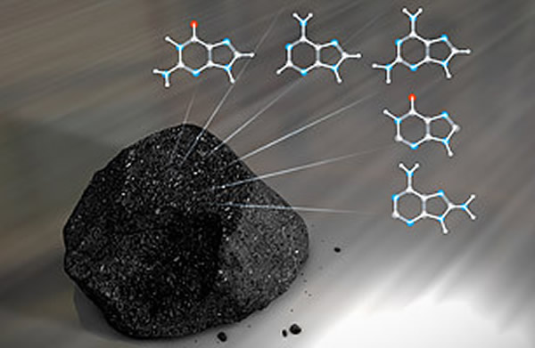 没有人确切的知道地球上最早的有机物是如何形成的。有一种理论认为最早得有机物可能根本就不是地球上产生的,而是来自外太空的“输入品”。科学家们多年来一直在陨石中仔细搜寻任何可能和有机物存在关系的蛛丝马迹。但在绝大多数情况下最后都被证明是它们来到地球之后受到的“污染”。但是今年,科学家们在对降落在南极的多块陨石进行检验时发现了腺嘌呤和鸟嘌呤,这是组成DNA的四种脱氧核苷酸之一。这本身并不令人惊讶,因为在此之前科学家便已经在陨石中检测出核苷碱基物质。这次发现的令人惊奇之处在于,这些核苷碱基物质附近似乎还存在一些其他相似但又不同的物质结构。