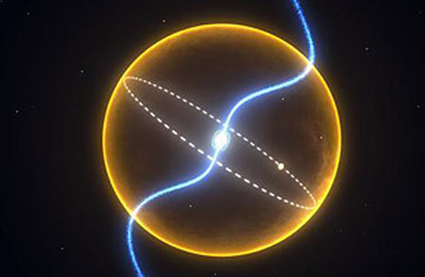 今年9月份,科学家们宣布发现一颗新的系外行星Kepler 16b,它就像星球大战中的塔图因星球一样,围绕着两颗恒星运行。在银河系中恒星组成的双星系统比比皆是,但是科学家们长期以来一直认为由于这种系统引力的复杂性,围绕它们运行的行星将处境危险。这就像是两头相互打斗的大象,而你是绝对不希望自己这只小老鼠当时就站在它们的腿边的。借助美国宇航局开普勒望远镜的帮助,来自“搜寻地外智慧生命”组织(SETI)的科学家们发现一个距离地球约2亿光年远的双星系统光芒存在周期性的下降,其周期约为229天。这是那里存在着一颗行星的标志,它就运行在我们的视线方向上,围绕两颗恒星运行。不过这里可不是适合生存的地方,计算显示这颗行星表面的温度约为零下73摄氏度。