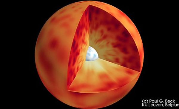 勒芬大学研究小组研究的是红巨星。红巨星的外层将扩大到比它们的原始大小大五倍多的规模并且明显变冷,所以看起来是红色的。与此同时,红巨星的内核却恰恰相反,它们会变得很紧密并且温度很高。