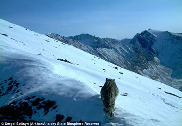 此前自然保护学家曾声称在西伯利亚看到过雪豹活动迹象,但从未拍摄下来。今年10月底,在阿尔泰共和国海拔13100英尺的Chikhachyova山脊发现一只漫步雪豹。来自美国纽约大学林业和科学环境学院的自然保护学家詹姆斯-吉布斯和其他研究人员在今年初曾看一过西伯利亚雪豹。