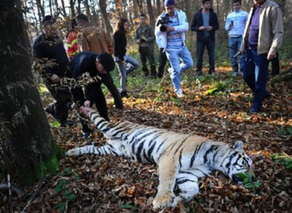 12月13日,在罗马尼亚中部锡比乌的一个森林里,人们检查被击毙的老虎。当日清晨,由于管理员疏忽未将笼门关紧,一只雌性西伯利亚虎从锡比乌一动物园逃出,进入动物园附近的森林。在森林里对这只老虎的第一次抓捕行动因其跃过高1.8米的围栏而失败。随后,这只老虎潜入市郊地区,使警方不得不挨家挨户通知附近市民不要外出。最后,这只老虎在市郊附近的森林里袭击猎人时被击毙。