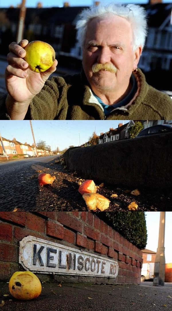 英国考文垂市一段公路忽然从天上下起苹果雨
