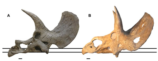研究人员关注的焦点集中在一块特殊的恐龙头骨化石标本上,有些人认为它属于三角龙,另外一部分人则认为属于不同的属。新研究分析所提供的证据更偏向于认为它是一块三角龙头骨化石,出现的争议在于化石上显著的骨骼差异是否属于三角龙不同个体发育阶段所表现出的特征,亦或归于属内的自然变异。