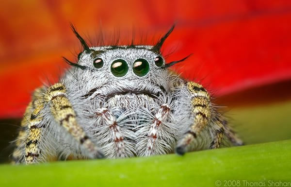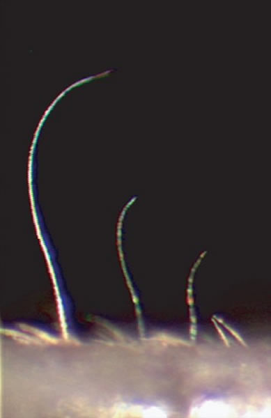 研究人员在《猎蛛毛发研究》中透露,这些细毛的运动是猎蛛在通过“耳朵”获取外界信息。实际上,Trichobothria(俗称听毛)是蜘蛛、昆虫等动物骨骼上特有的细毛。这种毛发是非常敏感的,它能扑捉空气中一个十亿分之一米(大约一个原子的大小)细小微粒的运动,能够发现附近食肉动物的存在和与天敌之间的距离(例如蟋蟀和苍蝇,就是通过其下部的听毛监测周围环境和觅食的敌人)。