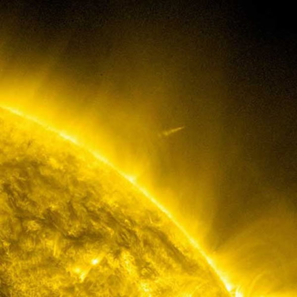 天文学家通过美国宇航局望远镜观测到了“Lovejoy”小彗星与太阳“擦肩而过”的精彩场面。不过,这颗彗星并非“毫发无损”地从太阳附近经过。观测结果显示,现在它的体积只有“越日”前的10%左右了,其他部分(包括“彗尾”)都已经被高温熔化。