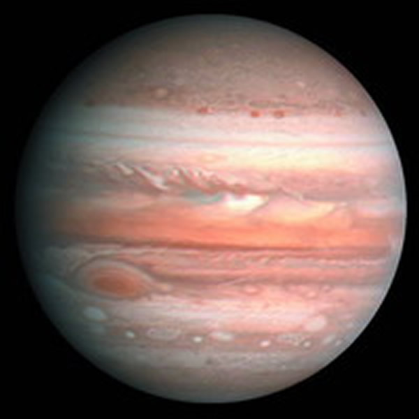 天文学家之所以把木星称为气态巨行星,缘于其大部分由氢和氦构成,后者在地球上都是气体。然而在木星上,由行星引力产生的巨大压力将大部分氢压缩为一种能够导电的金属流体。氢和氦包围着一个由铁、岩石和冰构成的中心核。而这一内核——质量相当于地球质量的10倍——仅仅是质量为地球318倍的行星的一小部分。