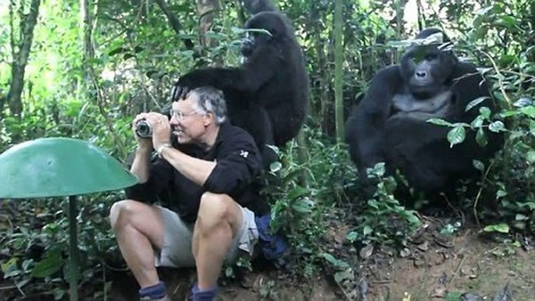 最近一名前往非洲乌干达游览的美国男子,在布温迪国家野生动物公园附近游逛时,经历了被大猩猩“围攻”的惊险一幕。