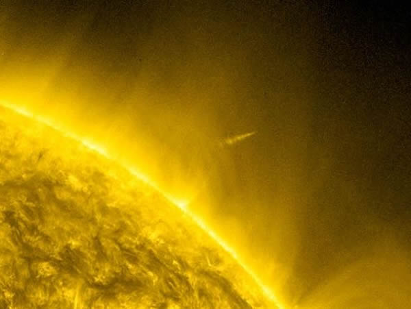 令天文学家惊讶的是,掠日彗星“Lovejoy”在上周与太阳实现特近距离遭遇后,竟然没有完全消失。它在距离太阳表面只有14万公里左右时与太阳擦肩而过,数小时后又出现于太阳的另一侧。美国宇航局太阳动力学天文台拍摄的一段视频显示,当12月15日“Lovejoy”彗星在太阳另一侧出现时,其升华部分的冰体在太阳大气层中形成一道明亮的条纹。