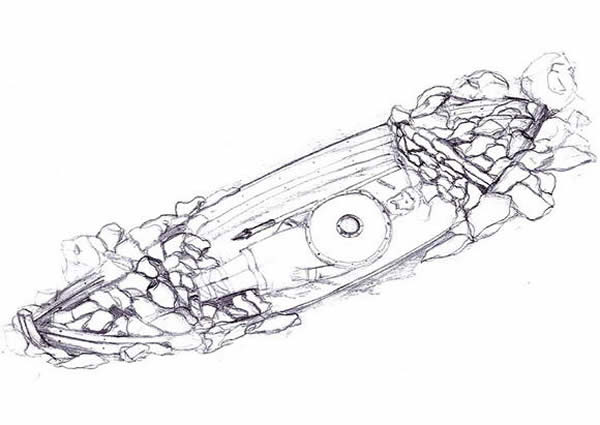 这是考古学家在苏格兰西部一处名为Ardnamurchan的偏远地区发现的北欧海盗船遗址,这也是考古学家首次在英国大陆发现的海盗船遗址。据研究,该艘海盗船具有1000多年的历史,其上面还发现了一个同样被埋葬的高等级"战士"的尸体,他的身旁还陪葬有一些史前古器物,极为壮观。