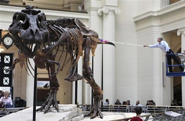 研究人员通过对著名霸王龙苏(SUE)和其它四个完整霸王龙骨骼进行三维激光扫描,所得结果表明,这类史前怪兽在青少年时期的生长速度远超过前人的想象。激光扫描包括了每块化石的头部,咽喉,躯干和尾部,并通过计算机重建了其肌肉结构和皮肤。研究结果同时认为成年霸王龙平均体重大约为9吨,在其早期发育年龄以每年2吨的速度生长,这比以前解剖学和统计学数据要提高约30%。