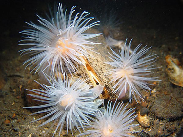 阿盖尔郡林尼湖(Loch Linnhe)的火焰贝壳层(Flame Shell beds),这是在西海岸发现的罕见的具有鲜艳的橙色摄食触手的神秘物种