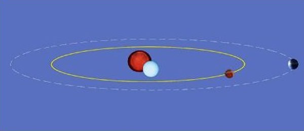 “在这两颗行星星球上,不仅能观看到一个红一个蓝白的两个‘太阳’高挂天空,还能近距离感受到B型亚矮星的快速脉动。”钱声帮说。