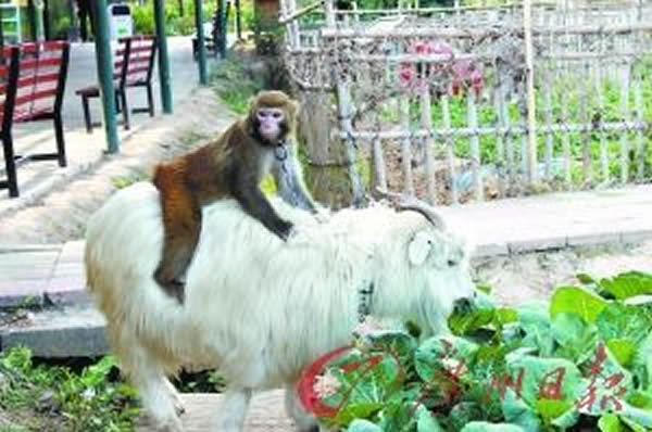 山羊驮着猴子,跑到菜地偷吃芥兰——这一幕最近总是反复上演,菜农叶叔告诉记者,这两个星期来,丽城动物表演团的山羊与猴子几乎每天都会来他的菜地偷菜,猴子会站在山羊背上,看是否有人在菜地干活。如果发现没有人就指挥山羊过来,它们大摇大摆进到菜地,大快朵颐。