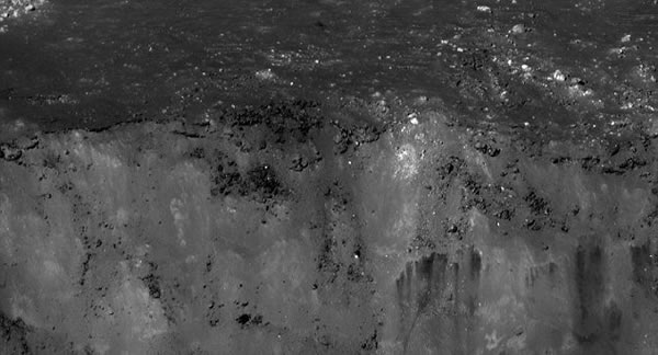 这是最新拍摄到阿利斯塔克陨坑壁上的矿层,它看上去颇似一个露天矿,在该陨坑形成末期月球表面岩石落入陨坑之中