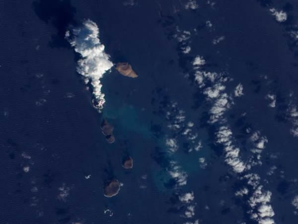 美国宇航局的“地球观测1号”卫星在一座火山喷发期间拍摄的照片,展现了白色烟羽从红海表面升起的景象。此次火山喷发可能形成一座新的岛屿。这座火山位于也门西岸小岛群祖拜尔群(Zubair Group)。祖拜尔群是红海的断裂区,随着非洲和阿拉伯构造板块拉开,祖拜尔群内形成新的洋壳。