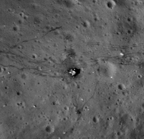 在对高分辨率月球表面图像的甄别过程中,已经发现了一些人工痕迹(非自然因素),然而,它们被证明都是人类制造的。其中不仅包括了美国宇航局阿波罗登月计划中宇航员活动留下的痕迹,也有苏联的无人探测器,其中一些坠落月球表面的探测器并没有确切的坐标位置记录,只有那些略带古怪的阴影,以及反冲火箭发动机制动产生的圈形扰动尘埃。