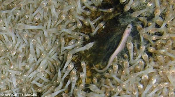 登特山的喷口,生活着类蛇鱼以及此前从未见过的蜗牛种群和类似跳蚤的甲壳纲片脚类动物
