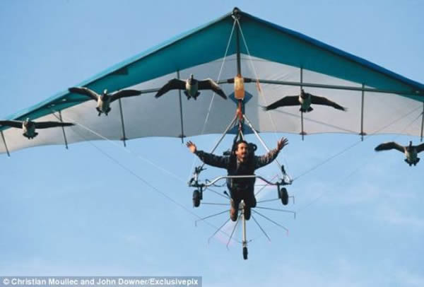 穆莱克驾驶机动滑翔飞翼与一群黑雁比翼齐飞