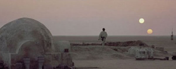 塔图因是科幻电影《星球大战》中卢克•天行者的故乡行星,在这个沙漠行星上可以看到两个太阳。NASA天文学家认为,像虚构的塔图因行星一样拥有两个太阳的行星是很常见的,可能存在生命