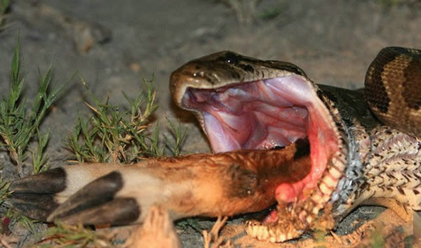 夏季高温经常躲阴凉处,于夜间活动捕食。以突然袭击咬住猎获物,用身体紧紧缠住,将猎获物缢死,然后从猎获物的头部吞入。