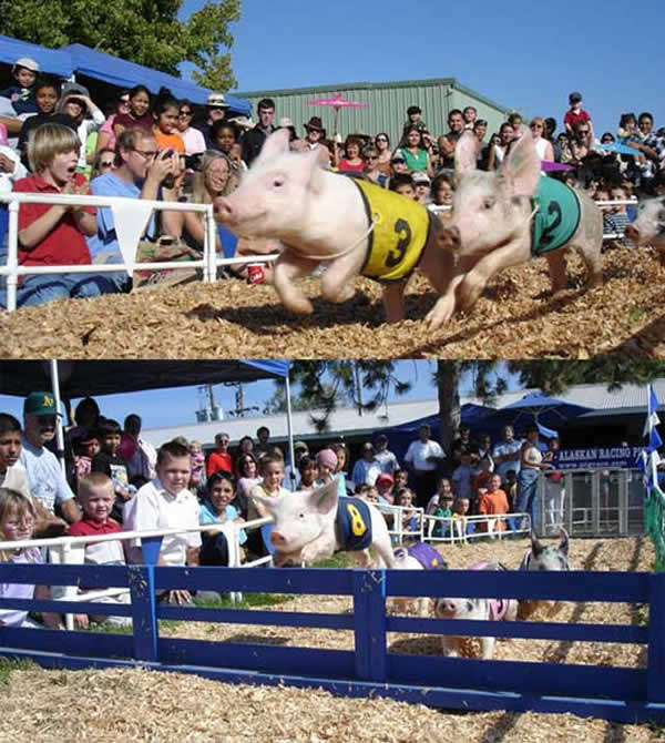 美国举行小猪快跑 来源: 神秘的地球 时间:2012年1月21日 14:11 美国举行小猪快跑 2012年1月20日,美国马特诺莫县,小猪竞速赛上,小猪们在60英尺长的跑道上以20迈的速度奔跑,跨越防护栏,这一场景让在场的孩子十分兴奋。在美国西部闻名这场赛猪运动比赛上,每一轮有四只可爱的小猪一绝高下。在紧张的比赛氛围的诱使下,当然还有终点处食物的诱惑下,小猪们奋力跨过两英尺高的围栏。比赛虽然是为了取悦儿童设置的,但也可以看到一些热衷于这项比赛的大人们欢呼雀跃。 国际在线 上一篇 下一篇 TAG: 美国