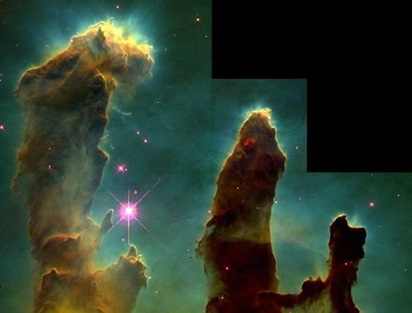 哈勃太空望远镜拍摄的图像暗示着新恒星诞生于柱状结构之中,由于模糊的灰尘云,哈勃太空望远镜拍摄的可见光图像无法透视星云内部,无法证实年轻恒星是如何形成的。