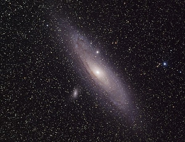 仙女座星系(M31)和它的两个伴星系:M110以及M32。科学家们认为像我们银河系这样的大型星系正是由这样的小规模伴星系在数十亿年的漫长时间内逐渐聚合而成的