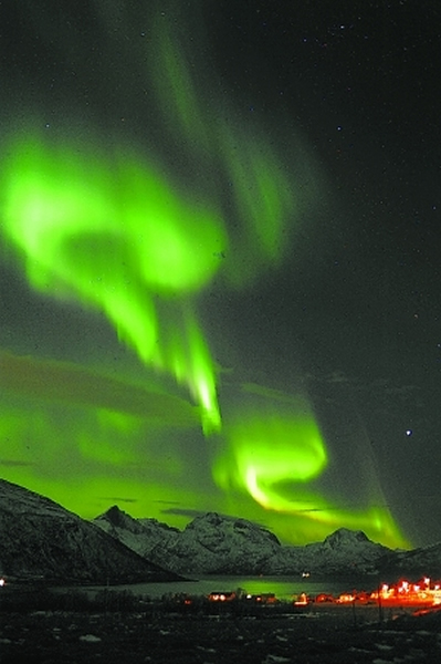 1月25日在挪威北部特罗姆瑟拍摄的北极光