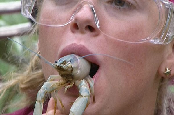 参加真人秀《我是明星,快放我走》录制的凯拉-柯林斯正在接受考验。昆虫是富蛋白、低脂肪食品,饲养昆虫的成本远低于牲畜
