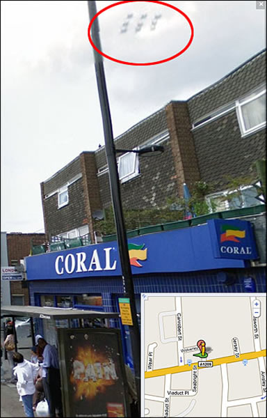谷歌街景拍到英国伦敦上空UFO编队