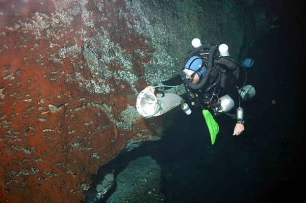 过去10年时间里,伊利菲和其他研究人员在巴哈马海域发现了几个可疑的细菌群落,但从没有收养样本。为此,科学家组织了此次考察任务,研究这个岛国。伊利菲和研究生布雷特-冈萨雷斯潜入巴哈马的3个蓝洞——Sawmill Sink、Cherokee Road Extension和Sanctuary,测量温度、盐度和酸度,同时测量氧和硫化氢水平。此外,他们还收集了细菌群落样本。伊利菲说:“其中一个蓝洞的细菌垫完全覆盖岩壁,厚度达到1英寸(约合2.54厘米)以上,可以用手将它们从岩壁上剥下来,而后放入样本袋。”