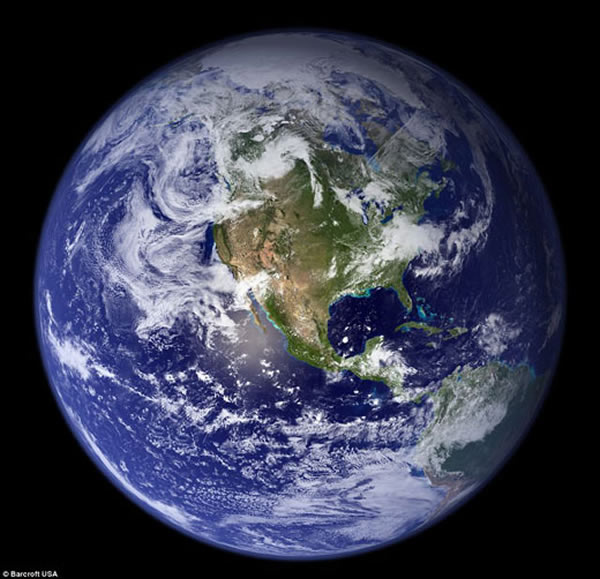 地球是一颗美丽的蓝色球体,在浩瀚的银河系中,它的外观更是尤为特别,五颜六色的“外表”将地球装扮的十分美丽。天文学家就一直对地球的美丽十分感兴趣,美国宇航局从1972年就开始对我们这个美丽的“蓝色星球”进行不同角度的写真拍摄。从宇宙中拍摄到的地球令人十分惊艳,就像是黑色绒布上的一颗蓝宝石一样动人。自从天文学家无意中发现了这种惊人的美后,美国宇航局每年都会用卫星影像拍摄大量的地球写真高清图集,为人们带来许许多多地球的美丽罕见瞬间。在2012年1月23日,美国宇航局就利用阿波罗号宇宙飞船在距离地球2.8万英里的距离对地球进行了写真拍摄,照片中的地球十分“耀眼”,在一望无垠的黑色宇宙衬托下,就像一颗璀璨发光的蓝色大理石球体一样吸引人。